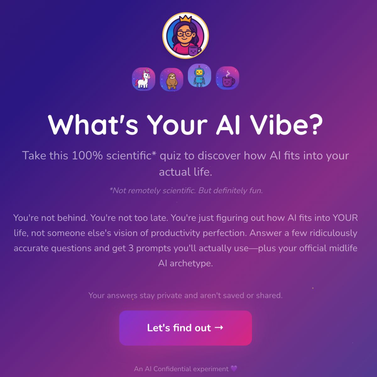 Then get 3 AI prompts customized to your vibe. One for work. One for home. One for fun.